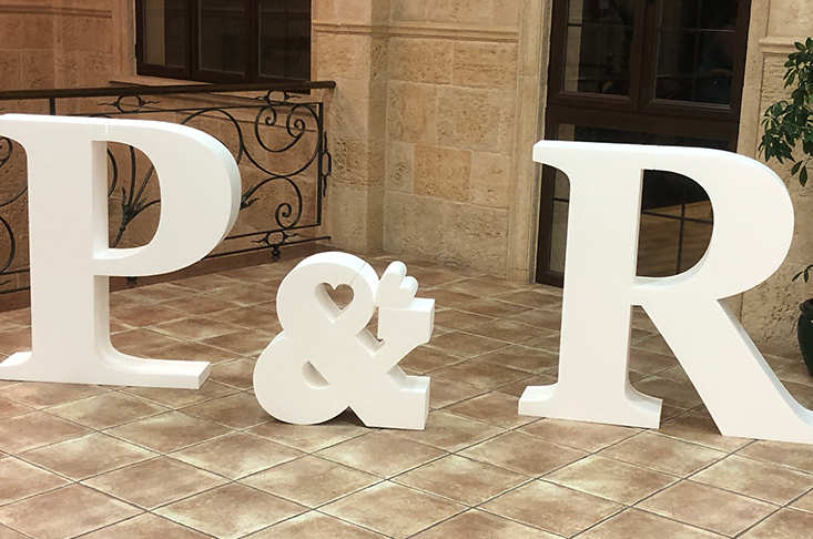 - En una boda romántica, las letras gigantes pueden formar las iniciales de los novios o la palabra "amor" como telón de fondo para la ceremonia o la recepción.
