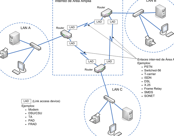 Una red de área amplia es una red de computadoras que se extiende sobre un área geográfica grande, como una ciudad, un estado o incluso un país. Esta conecta redes más pequeñas, como las redes de área local (LAN, por sus siglas en inglés), en diferentes ubicaciones geográficas, utilizando tecnología de comunicación de datos. Las WAN son utilizadas por empresas y organizaciones gubernamentales para compartir recursos, como archivos, software y servicios.
